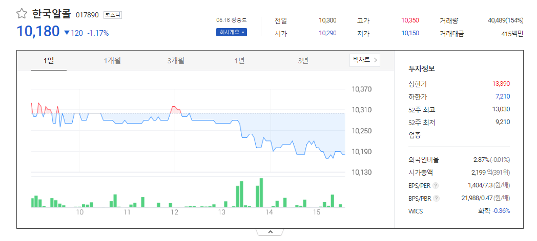 이 글에서는 한국알콜 주가 전망과 목표 주가, 기업 정보에 대해서 설명합니다. 주식 투자에 앞서 기업 주가 정보와 재무 상태를 정리해보는 것은 아주 중요합니다. 한국알콜 주식의 주요 현황과 투자 정보를 확인하시고 현재 시장에서 어떤 상황인지 알아보겠습니다.