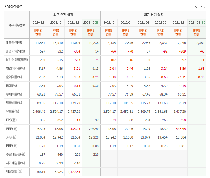 -2022년 12월 전년동기 대비 연결기준 매출액은 14.7% 감소, 영업이익 적자전환, 당기순이익 적자전환. 2022년 초반부터 전자기기의 수요의 기저효과로 특히 TV, 모니터 등의 IT 제품의 수요 감소가 나타나고 있음. 동사는 전장 사업부를 새로운 동력으로 삼고 경쟁력을 강화하고 있음. 자동차 사업부를 독일로 이전한 뒤 유럽 시장 공략에 박차를 가하고 있음.