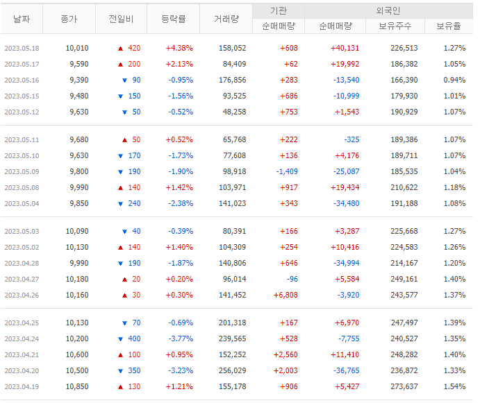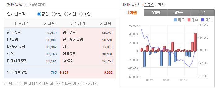 물론 제일 좋은 경우는 기관과 외국인이 같이 매수하는 쌍끌이 종목을 공략하는 방법입니다. 큰 세력 두개가 같이 매수한다는 것은 투자하기 좋다는 뜻입니다. 주식의 전망을 분석하려면 기업체 상태를 분석하고 주식시장에서의 위치를 파악해야 합니다. 그리고 기관과 외국인 매수 흐름을 확인한다면 투자에 있어서 확률을 올리는 것이 가능합니다.