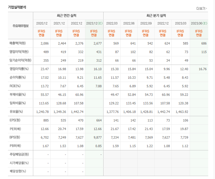 -2022년 12월 전년동기 대비 연결기준 매출액은 3.6% 감소, 영업이익은 20.6% 감소, 당기순이익은 12.1% 감소. 주요 사업 부문인 건설폐기물 처리 사업이 세종지점, 인선기업, 영흥산업환경 등 비수도권 지역에서 어려움을 겪으며 매출이 감소. 매출 감소와 판관비, 인건비 증가에 따라 영업이익 감소. 2020년 10월 인수한 영흥산업환경의 소각로 증설공사가 완료됨에 따라 향후 관련 매출 증가와 수익성 제고 효과가 기대.