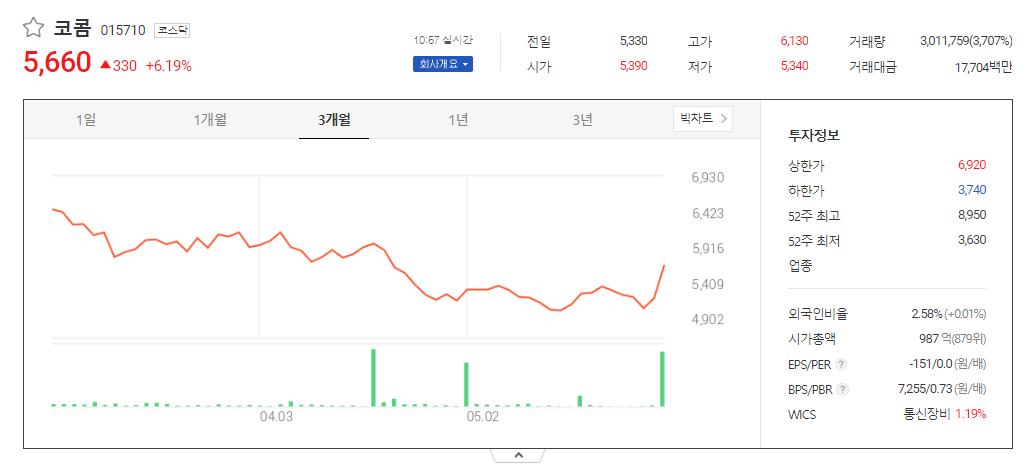 코콤 주가 전망 상태 시장 흐름 분석