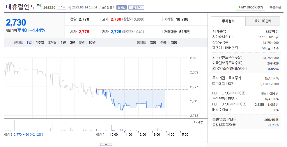 이 글에서는 내츄럴엔도텍 주가 전망과 목표 주가, 기업 정보에 대해서 설명합니다. 주식을 알아보기 전에 기업 정보를 확인하고 주가 정보에 대해 살펴보는 것은 매우 중요합니다. 내츄럴엔도텍 주식의 주요 현황과 투자 정보를 확인하시고 현재 시장 흐름을 알아보겠습니다.
