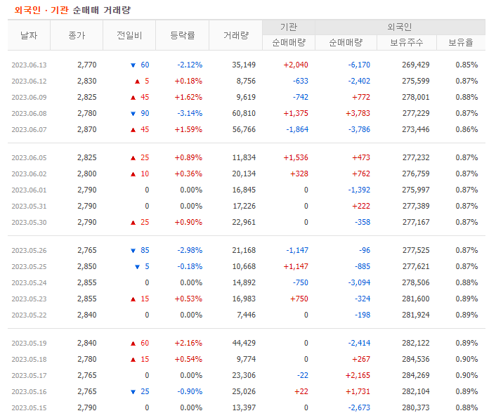 제일 좋은 경우는 기관과 외국인이 같이 매수하는 쌍끌이 종목을 찾아서 공략하는 것입니다. 큰 세력 두개가 같이 매수하는 것은 투자하기 좋다는 뜻입니다. 해당 종목의 주가 전망을 알아보기 위해서는 기업체를 우선 분석하고 시장에서 흐름을 분석해야 합니다. 그리고 기관과 외국인 매수 흐름을 확인한다면 투자에 있어서 확률을 올릴 수 있습니다.