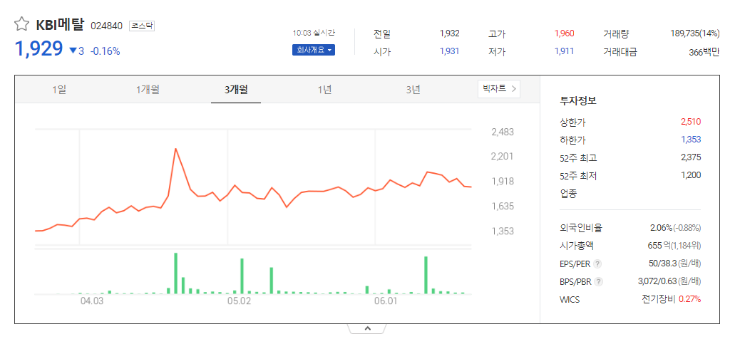 KBI메탈 주가 분석