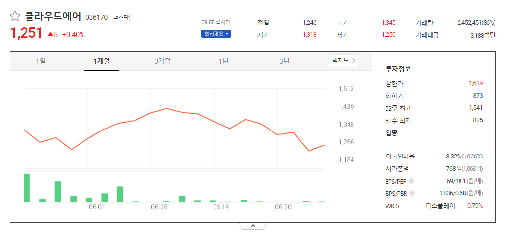 클라우드에어 주가 전망 분석표와 기업 정보 알아보기
