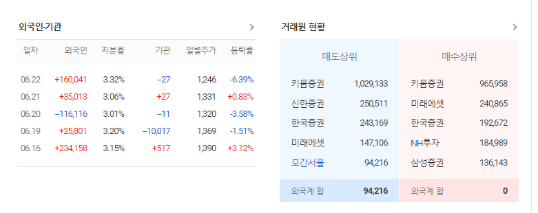 물론 가장 좋은 경우는 외국인과 기관 모두 매수하는 쌍끌이 주식을 살펴보는 방법입니다. 외국인과 기관이 같이 매수한다는 뜻은 그만큼 좋은 종목이라는 뜻입니다. 주식의 흐름을 분석하기 위해서는 기업 정보를 분석하고 시장에서의 위치를 분석해야 합니다. 그리고 기관이나 외국인 매수 흐름을 확인한다면 수익을 낼 확률을 올리는 것이 가능합니다.