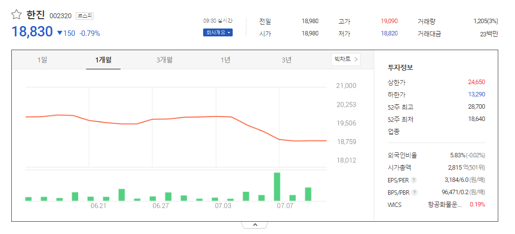 한진 주가 분석