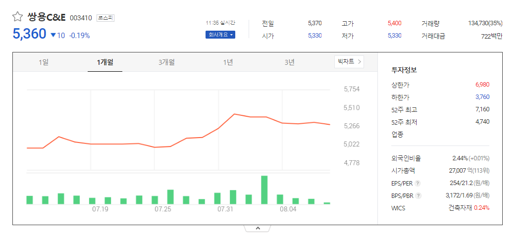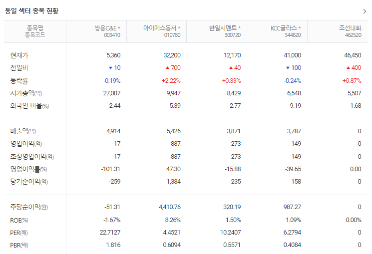 쌍용C&E 주가 분석