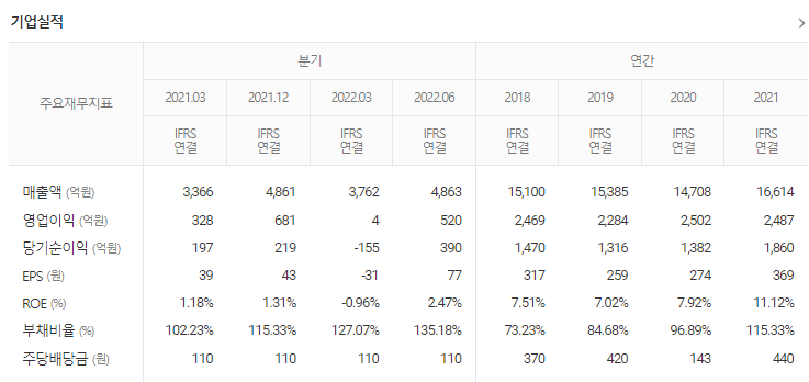 -2023년 3월 전년동기 대비 연결기준 매출액은 30.6% 증가, 영업이익 적자전환, 당기순손실은 67.1% 증가. 매출이 증가하였지만 매출원가, 판관비, 인건비 등 비용 발생 또한 크게 증가하여 영업이익이 적자전환하였고 영업외비용이 증가하여 당기순손실도 증가함. 제조과정의 산업부산물과 일반 폐기물 등 순환자원의 활용 확대를 위한 대규모 투자를 진행중에 있음.