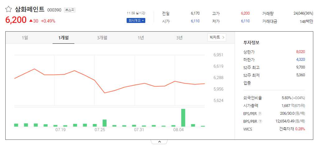 삼화페인트 주식 결론