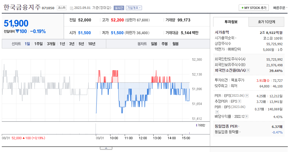 한국금융지주 주가 분석