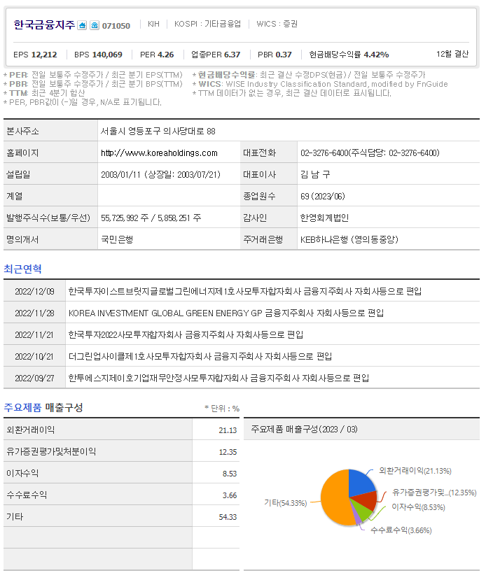 한국금융지주 가치 분석