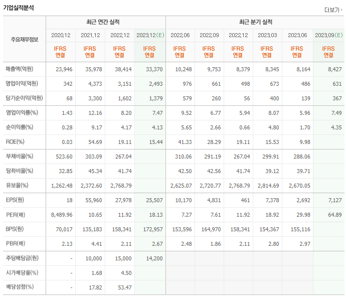 -2023년 3월 전년동기 대비 연결기준 매출액은 16.8% 감소, 영업이익은 33.8% 감소, 당기순이익은 41.1% 감소. 산업자재 부문은 자동차 시장의 성장과 더불어 아라미드, 탄소섬유와 같은 High tech. 신소재 제품의 개발 및 사업화를 통해 지속 성장이 예상. 동사 섬유 부문의 스판덱스의 Creora는 시장을 리딩하는 Global M/S 1위 브랜드로서의 지위를 유지하고 있음.