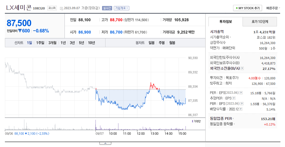 이 글에서는 LX세미콘 주가 전망과 목표 주가, 기업 정보에 대해서 설명합니다. 주식 거래에서 중요한 점은 미래 기업 가치를 예상하며 선제적으로 움직이는 것입니다. 투자할 종목을 고르기 전에 현재 기업 상황과 지표를 살펴야 합니다. LX세미콘 주식의 주요 현황과 투자 정보를 확인하시고 주식 투자에 도움이 되는 정보들을 모아 제공하니 투자에 도움을 받으실 수 있을 것입니다..