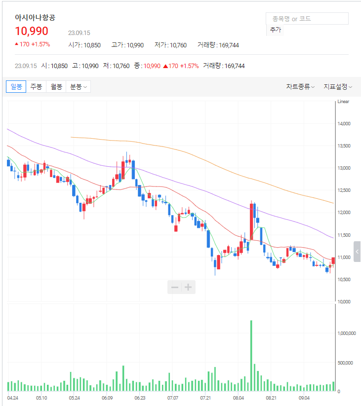 아시아나항공 주가 분석