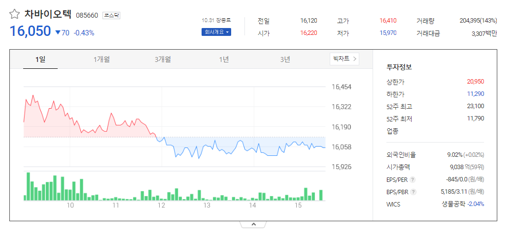 차바이오텍 주가 분석