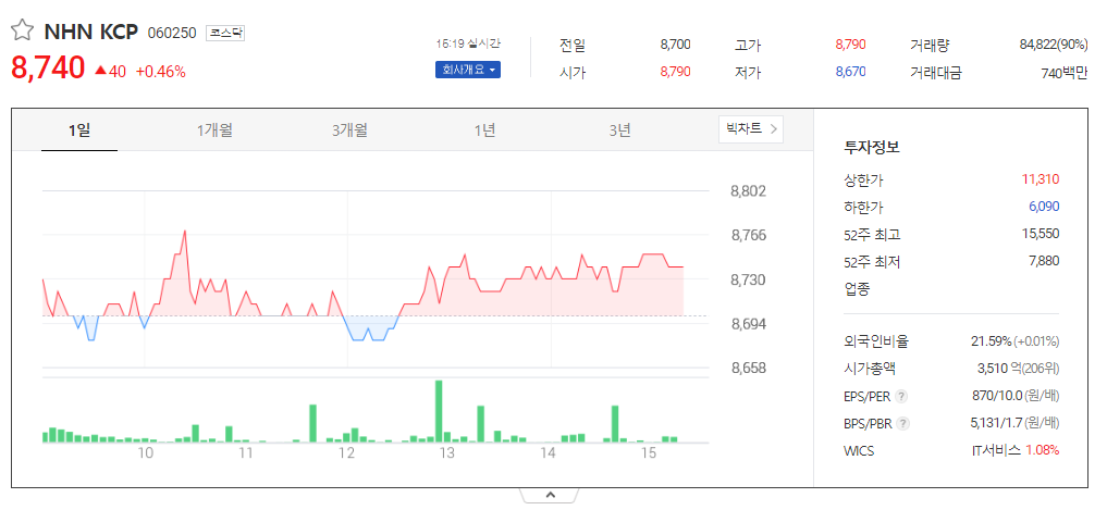 이 글에서는 NHN KCP 주가 전망과 목표 주가, 기업 정보에 대해서 설명합니다. 주식 거래에서 주목해야 할 점은 미래의 기업 가치를 예측하고 먼저 움직이는 것입니다. 투자 대상을 선택하기 전에 현재 기업 상황과 지표를 살펴보아야 합니다. NHN KCP 주식의 주요 현황과 투자 정보를 확인하시고 주식 투자에 도움이 될 만한 정보들을 모아 놓았으니 투자를 고려하실 때 참고하세요..