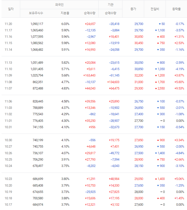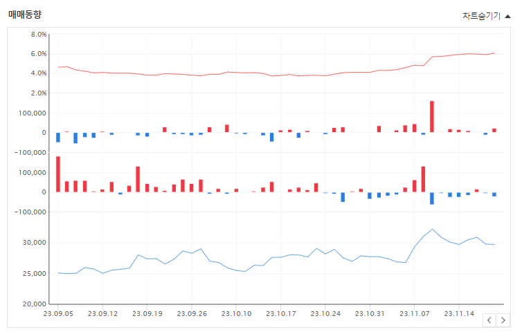 그렇기에 개인 투자자는 기관이나 외국인 세력의 움직임을 따라가며, 약한 세력에서도 투자로 수익을 얻는 것이 가능합니다. 기관 투자자를 따르는 트렌드가 최근에 더 일반적인 것으로 보이며, 이는 외국인의 매수가 불안정하고 개인의 단기 거래가 기관과 유사하기 때문입니다.