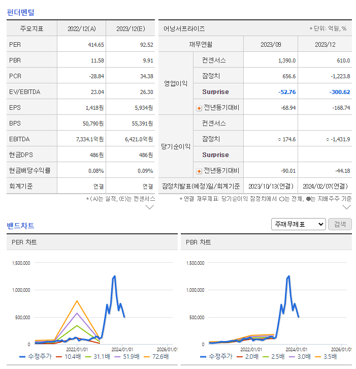 -2023년 9월 전년동기 대비 연결기준 매출액은 68.9% 증가, 영업이익은 4% 감소, 당기순이익은 51.6% 감소. 2023년 3분기에 북미지역의 자회사를 새롭게 연결대상회사로 편입시켰음. 실적의 경우 광물가격 하락과 원자재 재고 부담으로 영업손실이 발생하여 적자로 전환함. 동사는 연결회사인 에코프로머티리얼즈를 그룹사의 시설확충을 위한 작금확충 목적으로 물적분할 후 상장하였고 IPO 흥행에 성공함.