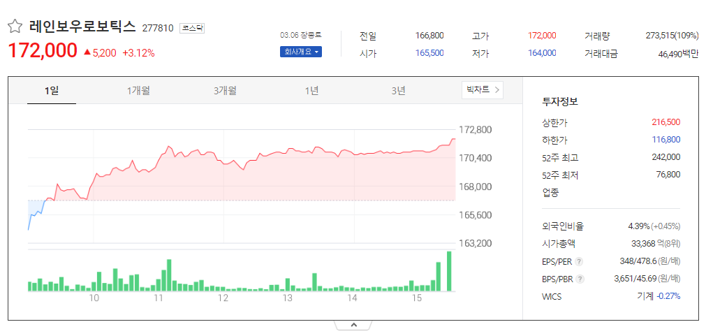 레인보우로보틱스 주가 분석