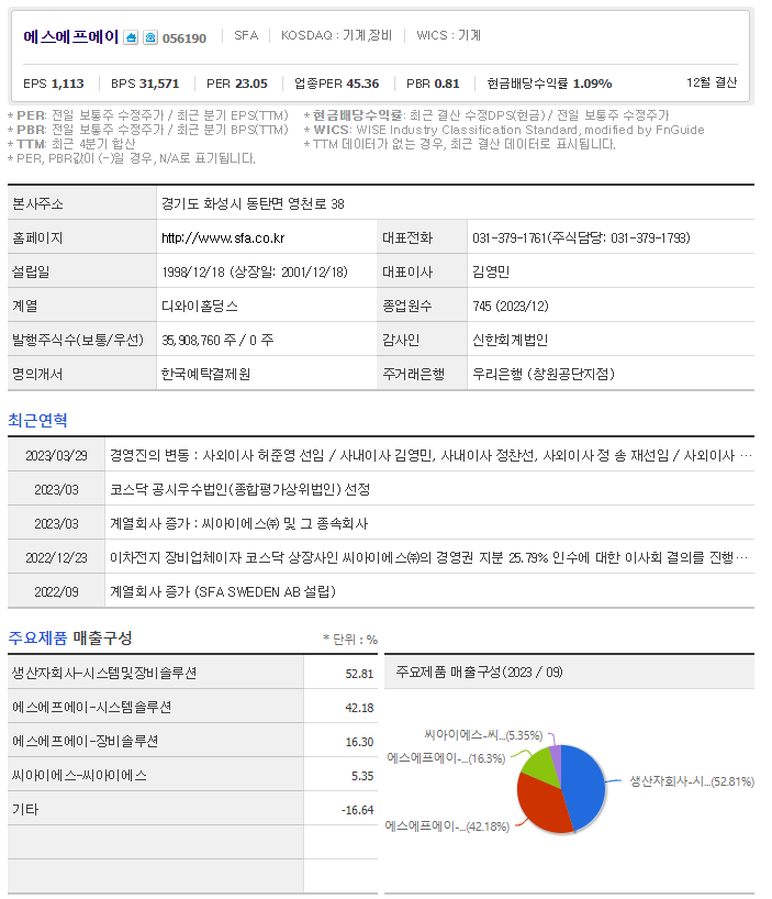 에스에프에이 가치 분석