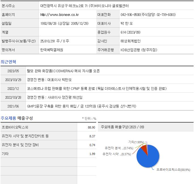 바이오니아 기업 개요
