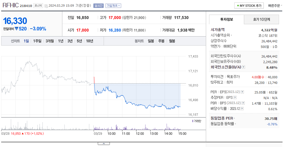 이 글에서는 RFHIC 주가 전망과 목표 주가, 기업 정보에 대해서 설명합니다. 주식 시장에서 중요한 것은 미래의 기업 가치를 예측하고 선제적으로 움직이는 것입니다. 투자 대상을 선택하기 전에 현재 기업의 현황과 데이터를 확인하는 것이 필요합니다. RFHIC 주식의 주요 현황과 투자 정보를 확인하시고 주식 투자에 도움을 줄 자료들을 모아 두었으니 투자에 도움을 받으시길 바랍니다..