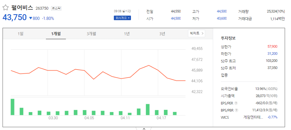 이 글에서는 펄어비스 주가 전망과 목표 주가, 기업 정보에 대해서 설명합니다. 주식을 제대로 하기에 앞서 기업 현황고 현재 시장 흐름에 대해서 알아보는 것은 매우 중요합니다. 펄어비스 주식의 주요 현황과 투자 정보를 확인하시고 주가 흐름을 정리해보겠습니다.