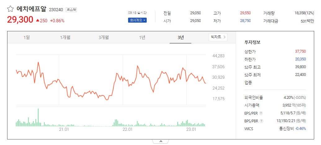 이 글에서는 에치에프알 주가 전망과 목표 주가, 기업 정보에 대해서 설명합니다. 주식 투자에 앞서 기업의 주가와 재무 정보에 대해서 정리해보는 것은 아주 중요합니다. 에치에프알 주식의 주요 현황과 투자 정보를 확인하시고 주가 흐름을 정리해보겠습니다.