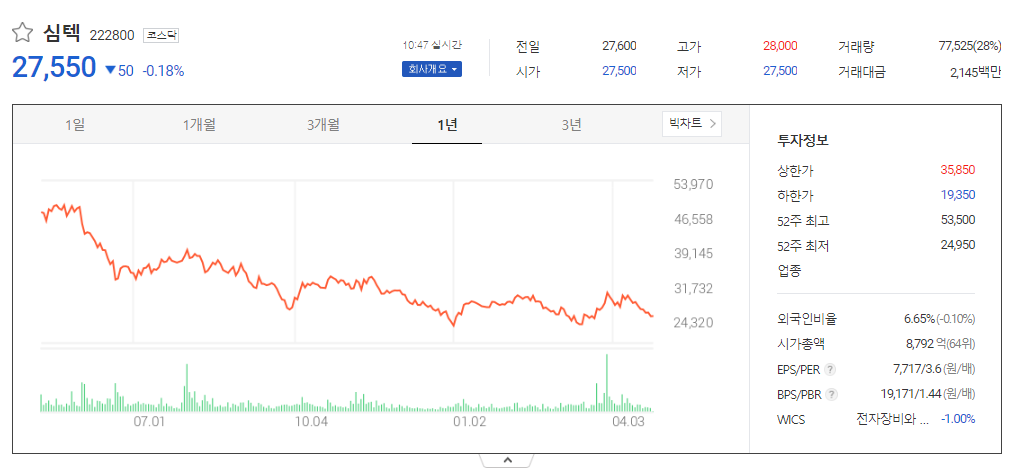 이 글에서는 심텍 주가 전망과 목표 주가, 기업 정보에 대해서 설명합니다. 주식 투자 전에 기업 현황고 현재 시장 흐름에 대해서 알아보는 것은 아주 중요합니다. 심텍 주식의 주요 현황과 투자 정보를 확인하시고 현재 시장에서의 흐름을 파악해 보겠습니다.