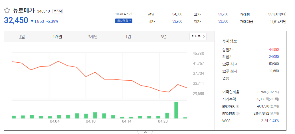 이 글에서는 뉴로메카 주가 전망과 목표 주가, 기업 정보에 대해서 설명합니다. 주식을 보기 전에 기업의 상태와 주가 정보에 대해서 정리해보는 것은 아주 중요합니다. 뉴로메카 주식의 주요 현황과 투자 정보를 확인하시고 주가 현황을 시장에 맞춰서 분석해보겠습니다.