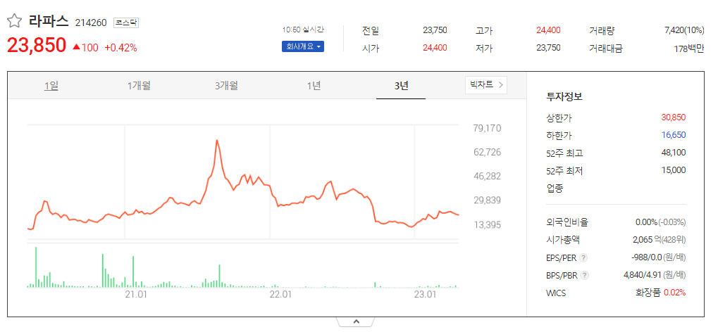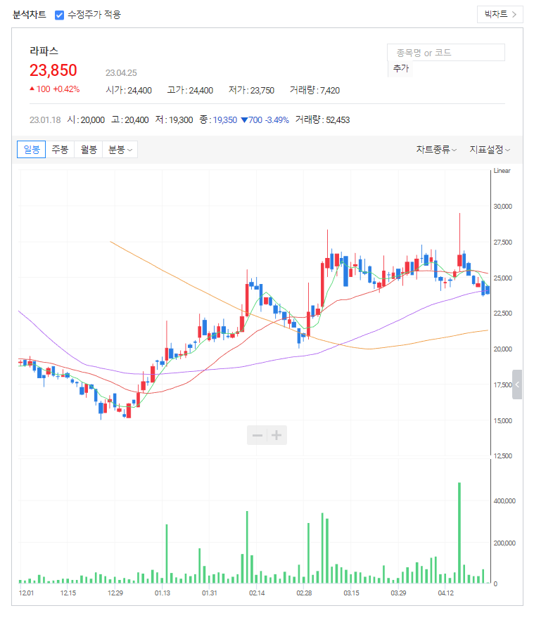 라파스 주가 전망 현황과 주식에서 기업 순위