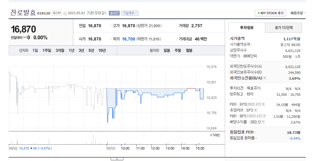 이 글에서는 진로발효 주가 전망과 목표 주가, 기업 정보에 대해서 설명합니다. 주식에 투자하기 전에는 기업 정보를 확인하고 주가 정보에 대해 살펴보는 것이 필요합니다. 진로발효 주식의 주요 현황과 투자 정보를 확인하시고 주가 현황을 시장에 맞춰서 분석해보겠습니다.