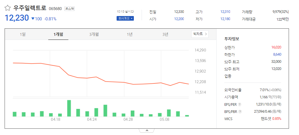 우주일렉트로 주가 분석