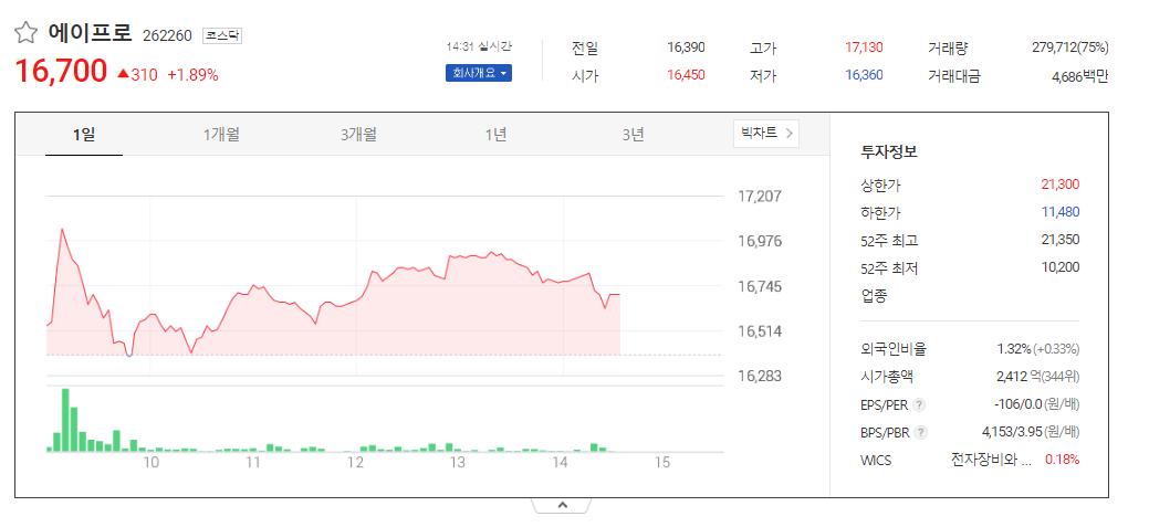 에이프로 주가 전망 현황과 주식에서 기업 순위