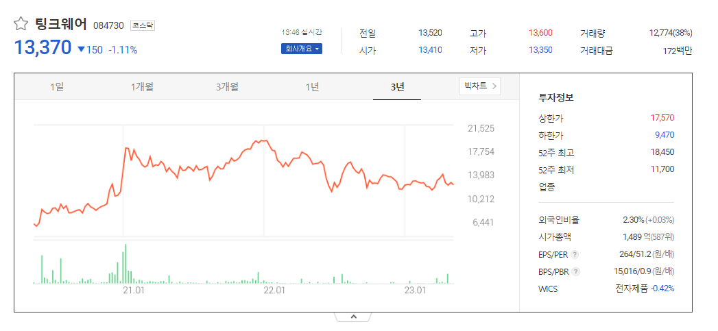 팅크웨어 주가 분석