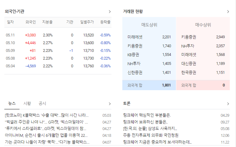 팅크웨어 주가 전망 상태 시장 흐름 분석